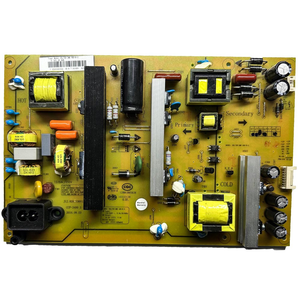 برد تغذیه تلویزیون مارشال با دریافت برق از پریز دیواری آن را به ولتاژ و جریان مورد نیاز برای قسمت های مختلف تلویزیون تبدیل می کند این عملیات شامل تنظیم ولتاژ برای صفحه نمایش بخش های صوتی و سایر مدارات الکترونیکی است همچنین از فیوز ها و مدارات محافظ برای جلوگیری از آسیب های ناشی از نوسانات برق استفاده می شود