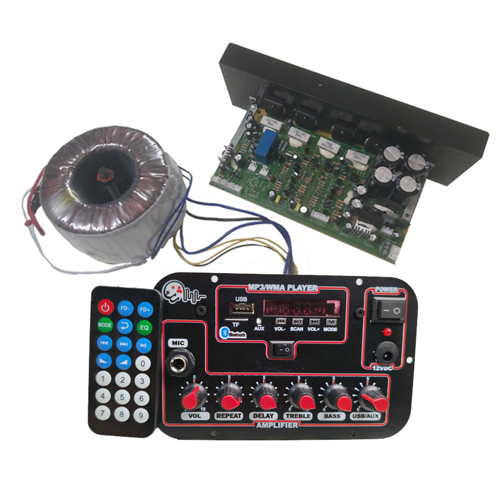پک کامل اسپیکر مناسب ساخت اسپیکر با متعلقات برد آمپلی ۴۰۰ وات واقعی،ترانس ، نگهدارنده ترانس، پنل فلزی ریموت دار با قابلیت پخش فلش و بلوتوث همراه با تنظیم کننده بیس و تریپل و با ۱۲ ولت کار میکند که مستقیم با یک سوکت راحت به برد امپلی وصل میشود.ورودی میکروفن که قابلیت تاخیر و تکرار هم دارد.